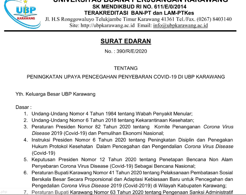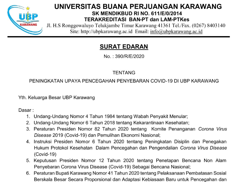 Read MoreSurat Edaran Peningkatan Upaya Pencegahan Penyebaran Covid-19 di UBP Karawang