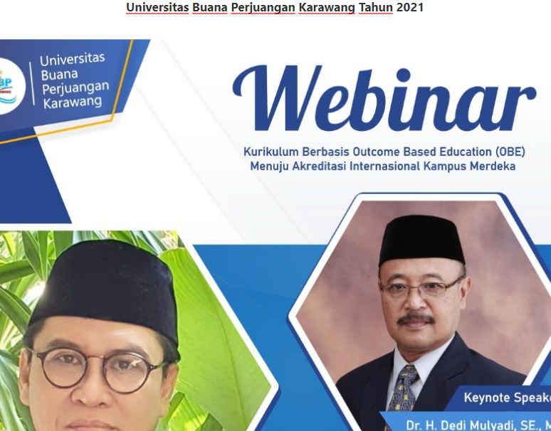 Read MoreWebinar Kurikulum Berbasis Outcome Based Education (OBE) Menuju Akreditasi Internasional Kampus merdeka Universitas Buana Perjuangan Karawang Tahun 2021 Materi webinar […]