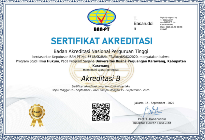 Read MoreProdi Ilmu Hukum Universitas Buana Perjuangan Karawang Terakreditasi B BAN-PT