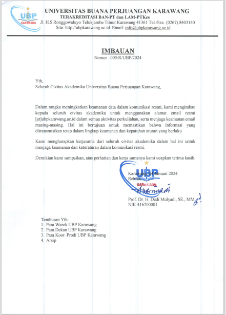 Read More[pdf-embedder url=”https://ubpkarawang.ac.id/wp-content/uploads/2024/01/005.-REKTOR-UBPK-IMBAUAN-KEAMANAN-DATA-DALAM-KOMUNIKASI-RESMI.pdf” title=”005. REKTOR UBPK – IMBAUAN KEAMANAN DATA DALAM KOMUNIKASI RESMI”]